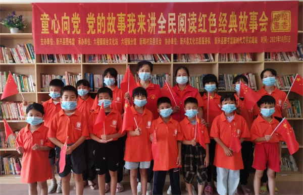 为引导少年儿童从小听党话、感党恩、跟党走,厚植爱党爱国爱社会主义情怀。让孩子们度过一个温馨幸福的假期,新兴县图书馆在新朗村服务点举办了童心向党 党的故事我来讲全民阅读红色经典故事会。
