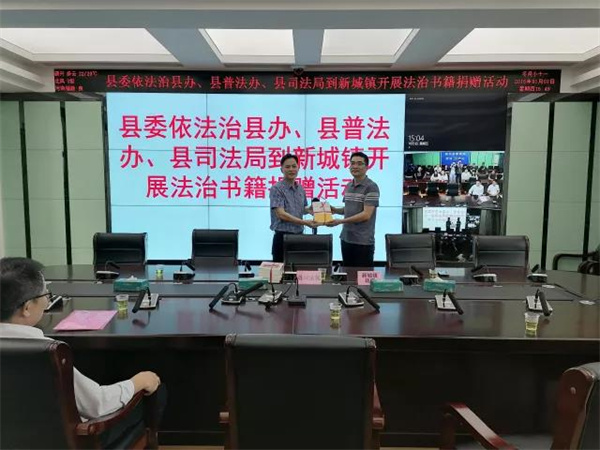 在赠书仪式上,何伟健表示,十分感谢县委依法治县办、县普法办、县司法局向新城镇捐赠的这批法治书籍,这是县级普法部门对新城镇法治建设的高度重视和支持。全镇各干部职工将会充分利用好这批法治书籍,好好学习,增强法治思维,不断提高依法履职的能力。