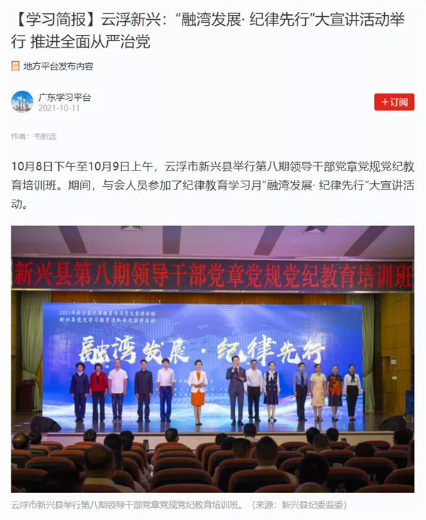 【学习简报】云浮新兴:“融湾发展· 纪律先行”大宣讲活动举行 推进全面从严治党