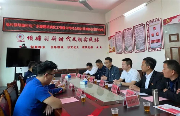 顺德区驻新兴县稔村镇驻镇帮镇扶村工作队自今年进驻以来,在帮扶中不断创新形式、丰富载体、完善机制,不断提高帮扶质量。为推进乡村振兴,助力村企共赢,近日,工作队通过牵线搭桥,引进广东顺德祁润化工有限公司与稔村镇坝塘村开展结对帮扶活动。11月30日上午,在稔村镇坝塘村举行村企结对共建协议签约仪式。