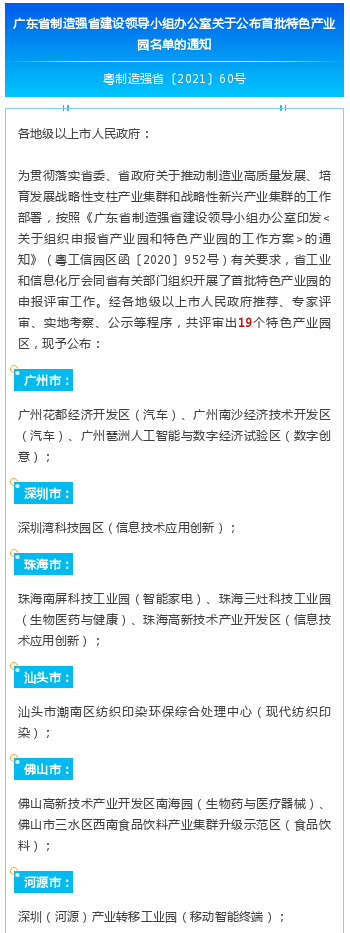 日前,广东省制造强省建设领导办公室公布了广东省首批特色产业园名单。其中,云浮市佛山顺德(云浮新兴新成)产业转移工业园(金属制品)成功上榜!