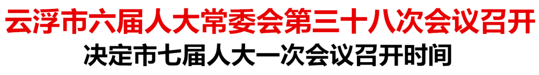12月16日,云浮市六届人大常委会举行第三十八次会议,听取和审议有关专项工作报告,审议通过有关人事任免事项。市委书记、市人大常委会主任卢荣春出席会议,市人大常委会常务副主任朱爱玲主持会议。