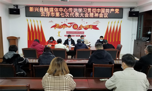 12月21日下午,新兴县融媒体中心在三楼会议室召开传达学习贯彻中国共产党云浮市第七次代表大会精神会议。县融媒体中心领导班子,各部室负责人等参加会议。会议强调:一要学习在先,认真学习领会云浮市第七次党代会会议精神,找准方向,学深学透学细,并把学习成效积极转化为做好新闻宣传工作的具体行动;二要思考在先,围绕会议精神思考如何做好宣传工作,细化工作任务,深入挖掘亮点、重点选题,讲好新兴故事;三要行动在先,充分利用融媒体各平台,主动策划宣传活动,加强和改进新闻宣传,让全县广大干部群众能听到看到学到领会到会议精神,为新兴全力打造高质量发展的融湾先行示范县贡献融媒力量。