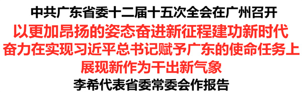 12月21日,中国共产党广东省第十二届委员会第十五次全体会议在广州召开。会议的主要任务是:坚持以习近平新时代中国特色社会主义思想为指导,深入学习贯彻党的十九届六中全会和中央经济工作会议精神,深入贯彻落实习近平总书记对广东重要讲话和重要指示批示精神,总结2021年工作,部署2022年工作,奋力在实现习近平总书记赋予广东在全面建设社会主义现代化国家新征程中走在全国前列、创造新的辉煌的使命任务上展现新作为干出新气象,以优异成绩迎接党的二十大胜利召开。省委书记李希代表省委常委会作报告,省委副书记、省长马兴瑞就经济工作作具体部署。