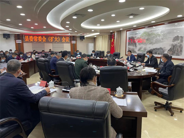 12月23日下午,县委书记王巍主持召开县委常委会(扩大)会议,传达学习贯彻习近平总书记重要讲话精神和中央有关要求精神,以及省委十二届十五次全会和市第七党代会精神,研究部署我县贯彻落实工作。县委副书记、县长陈哲江,县委副书记、政法委书记伍树全,县委常委汪杰、曾广伟、徐广志、曾超谊、陈一萱、赵婷婷、李耀强、梁福慧出席会议,县人大常委会主任肖志坚、县政协主席梁国华等县人大、县政府、县政协班子领导成员,各镇各相关部门主要负责人列席会议。