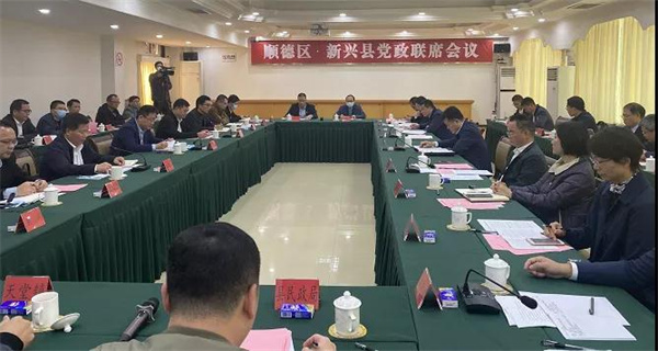 12月24日下午,顺德区——新兴县党政联席会议在我县召开,新兴县委书记王巍,顺德区委副书记、区长区柱明,新兴县委副书记、县长陈哲江出席座谈会。新兴县委副书记、政法委书记伍树全主持会议。