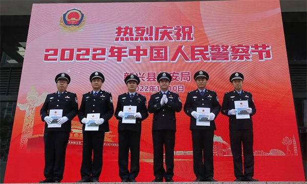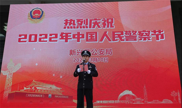 仪式上,王志洪代表新兴县公安局党委向全县广大公安民警、辅警及其家属致以节日的问候。并指出,近年来,全县公安机关和广大公安民警忠实践行“对党忠诚、服务人民、执法公正、纪律严明”总要求,牢记使命、忠诚履职,不怕牺牲、无私奉献,做到了维护稳定坚强有力、打击犯罪成效明显、服务发展主动有为、疫情防控勇于担当,以忠诚和担当书写瞩目篇章,为捍卫全县政治安全、维护社会安定、保障人民安宁作出了重要贡献。希望全县广大公安民警、辅警深入贯彻习近平法治思想和习近平总书记在中国人民警察警旗授旗仪式上的重要训词精神,增强“四个意识”、坚定“四个自信”、做到“两个维护”,始终保持枕戈待旦、快速反应的备战状态,继续发扬顽强拼搏的工作作风和敢打必胜的坚强斗志,扎实履行好党和人民赋予的新时代使命任务,以良好精神面貌、过硬队伍作风、一流工作业绩为建设平安新兴、法治新兴保驾护航,不断增强人民群众的获得感、幸福感、安全感,以优异成绩迎接党的二十大胜利召开。