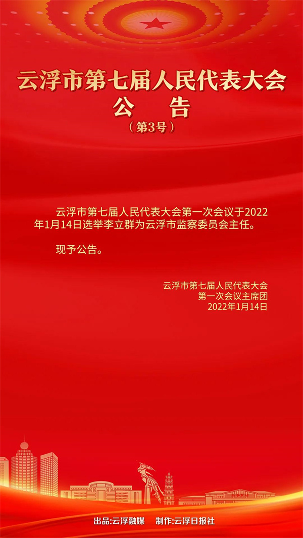 李立群,男,汉族,1970年8月生,省社科院在职研究生,中共党员,当选为云浮市监察委员会主任。