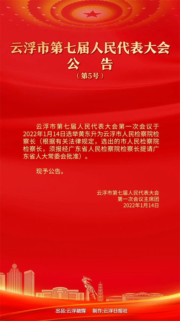 黄东升为云浮市人民检察院检察长(须报经省人民检察院检察长提请省人大常委会批准)。