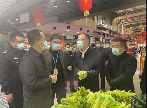 王志洪、刘彬强调,春节消费高峰已经来临,各经营单位要坚决守住安全底线、克服麻痹思想,持之以恒落实人员进出戴口罩、测体温等疫情防控措施。要加强风险管控,在限制餐饮人数、落实文明用餐制度等方面执行到位,尽量减少人员流动聚集。要认真落实好春节期间的食品安全、安全生产工作要求,压紧压实责任。把食品生产、流通、餐饮安全等工作做细做实做好,把安全生产的隐患排查整改到位。各职能部门要做好服务监测管理工作,强化市场保供运行,认真组织好粮食、肉类、蔬菜等商品的供应、储备、应急,做到市场有序、合理供应,守护好市民的“菜篮子”。要持续做好市场监管检查工作,加大打假打私力度,确保春节期间不发生消费安全事故。要始终绷紧疫情防控这根弦,聚焦“外防输入、内防反弹”要求,树立底线思维,强化监督检查,压紧压实安全监管职责,落实落细各项防疫举措,为群众欢度佳节提供坚实保障。