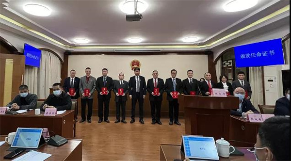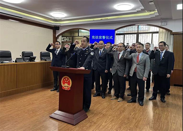 肖志坚向新任命同志颁发了任命书。接过任命书后,在副县长、县公安局局长王志洪的领誓下,新任命的国家机关工作人员依照宪法规定进行了宪法宣誓。