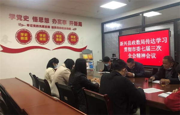 2月16日上午,新兴县政数局召开会议传达学习贯彻市委七届三次全会精神,研究部署贯彻落实工作。会议强调,全体干部职工要深刻学习领会全会精神,把学习全会精神与当前工作相结合,牢牢把握“时”与“势”、“危”与“机”、“稳”与“进”,以坚定信念推动全会精神落地落实。始终坚持立足本职服务大局,主动作为,全力做好“放管服”改革、“数字政府”改革建设、疫情防控、乡村振兴等中心工作,不断推动政务服务与数据管理事业高质量发展,以优异的成绩迎接党的二十大胜利召开!