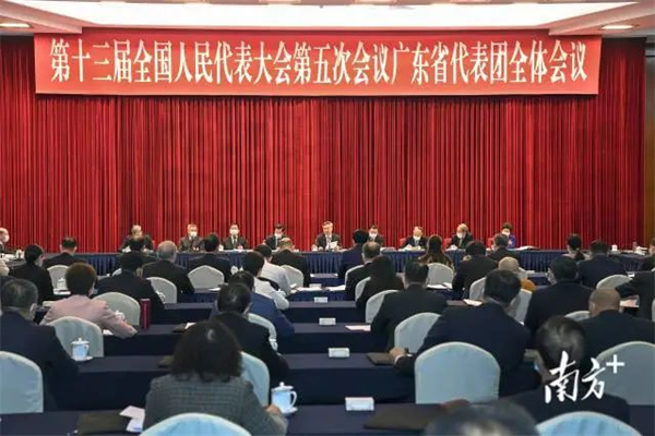3月5日下午,十三届全国人大五次会议广东代表团举行全体会议,审议政府工作报告。