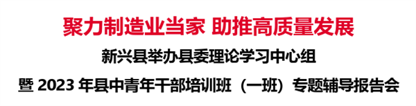 为深入学习贯彻习近平总书记视察广东重要讲话重要指示精神,坚持实体经济为本、制造业当家,推动新兴高质量发展,5月10日下午,新兴县举办县委理论学习中心组暨 2023 年县中青年干部培训班(一班)专题辅导报告会,邀请省委党校管理学部主任赵祥教授作专题辅导报告。县委书记陈哲江、县人大常委会主任肖志坚、县政协主席梁国华,县委副书记、政法委书记伍树全等县四套班子领导成员参加会议。