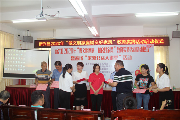 为贯彻落实习近平总书记“注重家庭、注重家教、注重家风”的指示精神,深入推进家庭文明建设,培育和传承优良家风家训,7月23日下午,我县举行2020年“做文明家庭树良好家风”教育实践活动启动仪式暨首场家教公益大讲堂活动。县委宣传部及创建文明家庭有关责任单位负责人参加启动仪式。