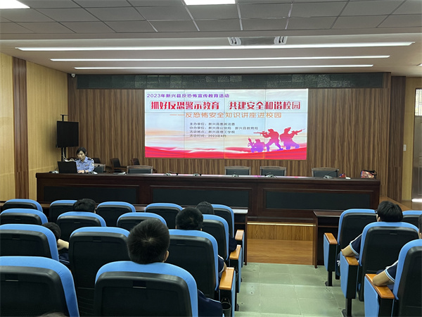 为进一步提升学校师生安全防范意识和能力,有效防范校园暴力及恐怖事件的发生,加强校园安全管理,提高广大师生的反恐意识和应对突发事件的能力。2023年4月26日,新兴县委政法委联合县公安局国保大队深入新兴县理工学校开展反恐怖安全知识讲座进校园活动。