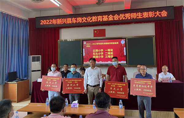 9月6日上午,2022年新兴县车岗文化教育基金会优秀师生表彰大会召开,表彰在教育战线辛勤工作的优秀教师和优秀教育工作者,并对车岗文化教育基金七个奖项的获奖者进行颁奖,进一步营造尊师重教的良好社会氛围。县人大常委会主任肖志坚,县委常委梁福慧,县政协副主席陈敏出席表彰会。