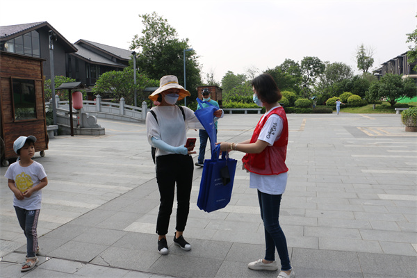 活动最后,志愿者们还通过派发宣传主题环保袋、环保小礼品、讲解环保知识等方式,向群众宣传人与自然和谐共生、绿色低碳生活方式等相关知识。