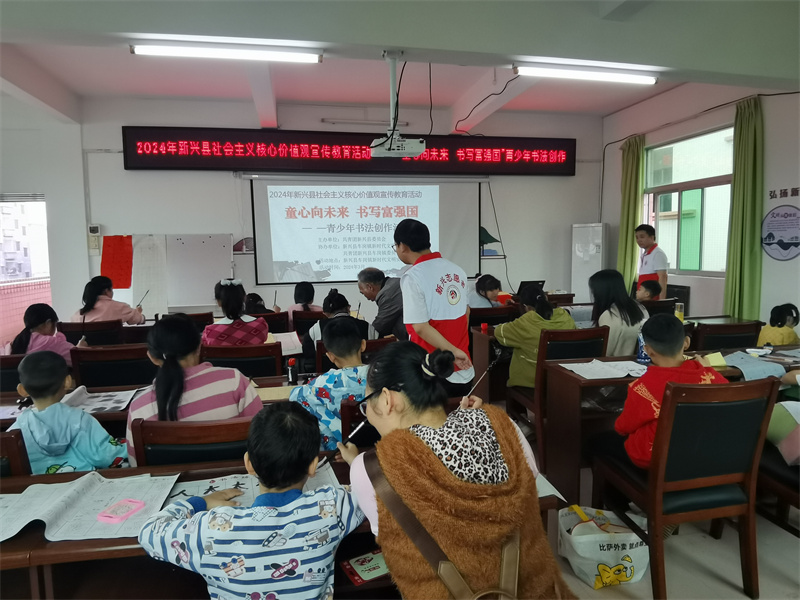 为加强社会主义核心价值观宣传教育,让社会主义核心价值观渗透到青少年日常学习生活中,倡导青少年做社会主义核心价值观的践行者和传播者。3月23日上午,由共青团新兴县委员会、新兴县车岗镇新时代文明实践所主办,共青团新兴县车岗镇委员会协办的“童心向未来,书写富强国”青少年书法创作活动在车岗镇新时代文明实践所举办。本次活动邀请了车岗镇书法名家曾宪煜担任指导老师,共吸引了20多名青少年参加。