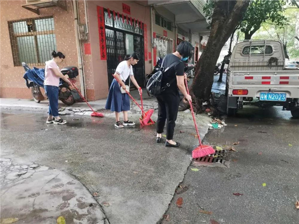 授旗仪式结束后,与会领导以及党员志愿者纷纷来到各自单位创文巩卫责任片区,开展以清洁大扫除为主要内容的主题党日活动。