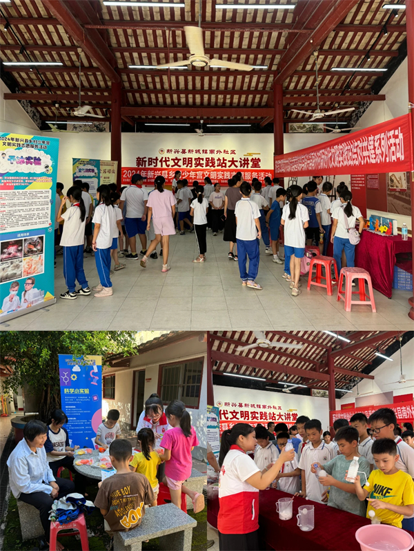 期间,县委宣传部组织县新时代文明实践中心在新城镇南外社区、联群村、里洞镇红卫村新时代文明实践站开展乡村少年宫文明实践志愿服务活动,吸引约200名群众参与活动。活动现场,志愿者为小朋友们科普干冰实验、空气炮、七巧板拼搭和科学小实验等一系列知识,通过提问的方式,循循善诱,引导孩子们思考其中的科学原理,孩子们恍然大悟,抽象的科学知识顿时变得立体可感,大家对科学也产生了更浓厚的兴趣。