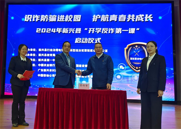 为向师生普及反诈知识,增强防范意识,保障自身权益不受侵犯,2月23日下午,新兴县打击治理电信网络新型违法犯罪联席会议办公室联合县教育部门等成员单位在新兴县第一中学举办“识诈防骗进校园 护航青春共成长”——2024年新兴县“开学反诈第一课”启动仪式。副县长、县打击治理电信网络新型违法犯罪工作局际联席会议副总召集人、县公安局局长王志洪参加仪式并讲话。