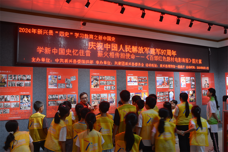 为庆祝中国人民解放军建军97周年,弘扬爱国主义精神,深化未成年人思想道德建设,2024年8月1日,中共新兴县委组织部联合团新兴县委开展了一次以“学新中国史忆往昔 薪火相传担使命——《百部红色题材电影海报》图片展”为主题的新中国史学习教育。