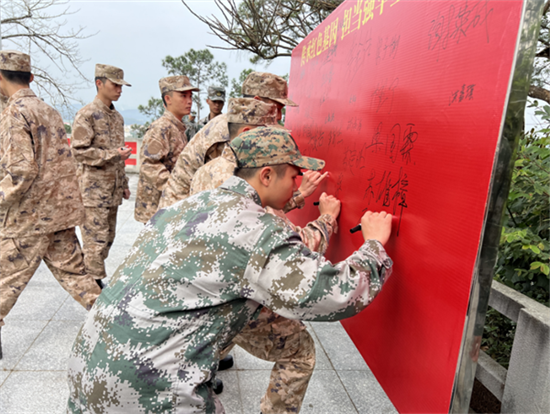 预定新兵精神昂扬,庄严宣读入伍誓词,立下铮铮誓言,现场签名许诺,表明坚定革命信念、矢志报国的决心。