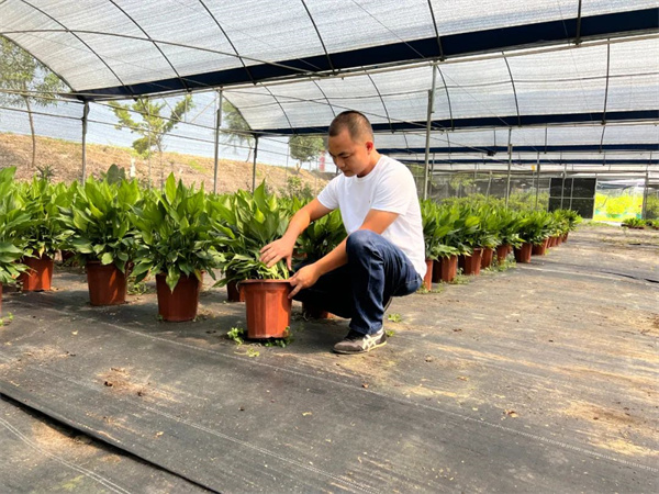 在2006年回到天堂镇种植万年青,当时觉得万年青市场挺好,学习公司+农户的模式去种植万年青,2009到2010年之后开始发展周边农户种植万年青,开始了公司+农户模式成立合作社,带领村民扩大万年青种植基地。