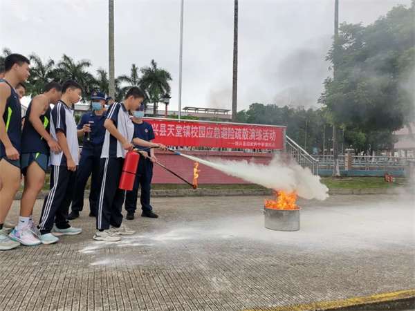 演练结束后,消防宣传人员通过通俗易懂的语言,向师生普及了日常学习、生活、工作中该如何预防火灾、如何处置突发状况、疏散逃生自救等消防常识,讲解灭火器的使用方法和注意事项并现场演示了使用干粉灭火器扑灭油盆火灾。在消防宣传人员的指导下,师生踊跃体验“灭火”,进一步增强了扑救初期火灾的能力。