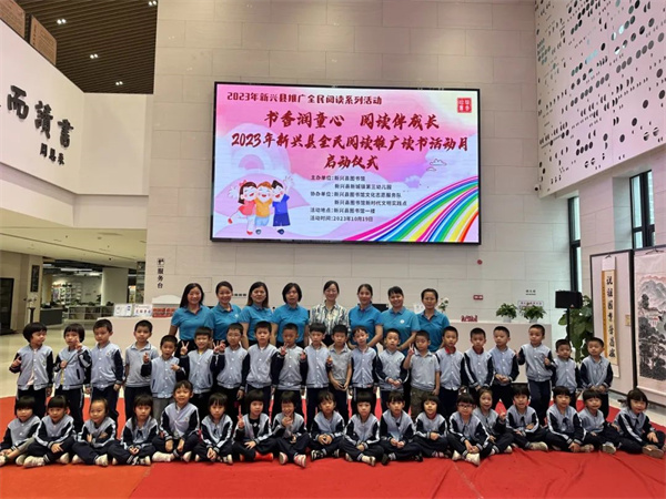 阅读是开启孩子智慧的窗,是打开孩子心灵的门,是人类精神成长的重要渠道。为了培养孩子们的阅读的兴趣,体验阅读乐趣,2023年10月19日上午,由新兴县图书馆和新兴县新城镇第三幼儿园共同主办的“书香润童心,阅读伴成长”2023年新兴县全民阅读推广读书活动月启动仪式在新兴县图书馆举行。