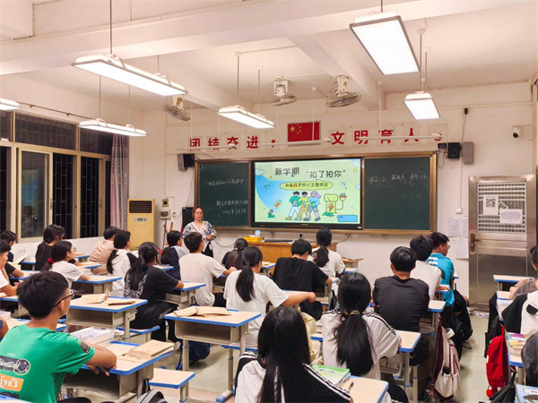 面对开学初普遍存在的“开学综合征”,学校在9月第一周全面启动“新学期,拍了拍你”收心主题班会课程。各班班主任精心设计班会流程,通过"假期趣事分享"让学生们坦然告别假期;“新学期展望”环节鼓励学生表达期待与担忧;最后通过“重温班规班约”,师生共同建立行为规范。1900多名学生在这场情感共鸣中完成了心理状态的平稳过渡,为新学期奠定了坚实基础。