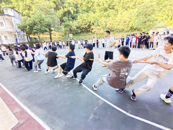 理论学习之后,“同心协力”户外心理团辅课程紧接着分批次覆盖七、八年级。八年级的“桃花朵朵开”“一圈到底”等协作项目考验着团队默契,七年级声势浩大的拔河比赛则凝聚着班级向心力。操场上不绝于耳的加油呐喊声,不仅是青春活力的释放,更是心理压力的有效宣泄,学生们在运动中真切感受到团队支持的力量。
