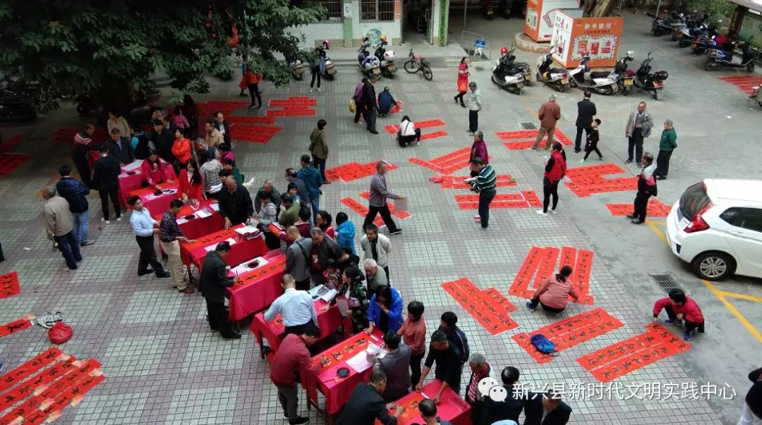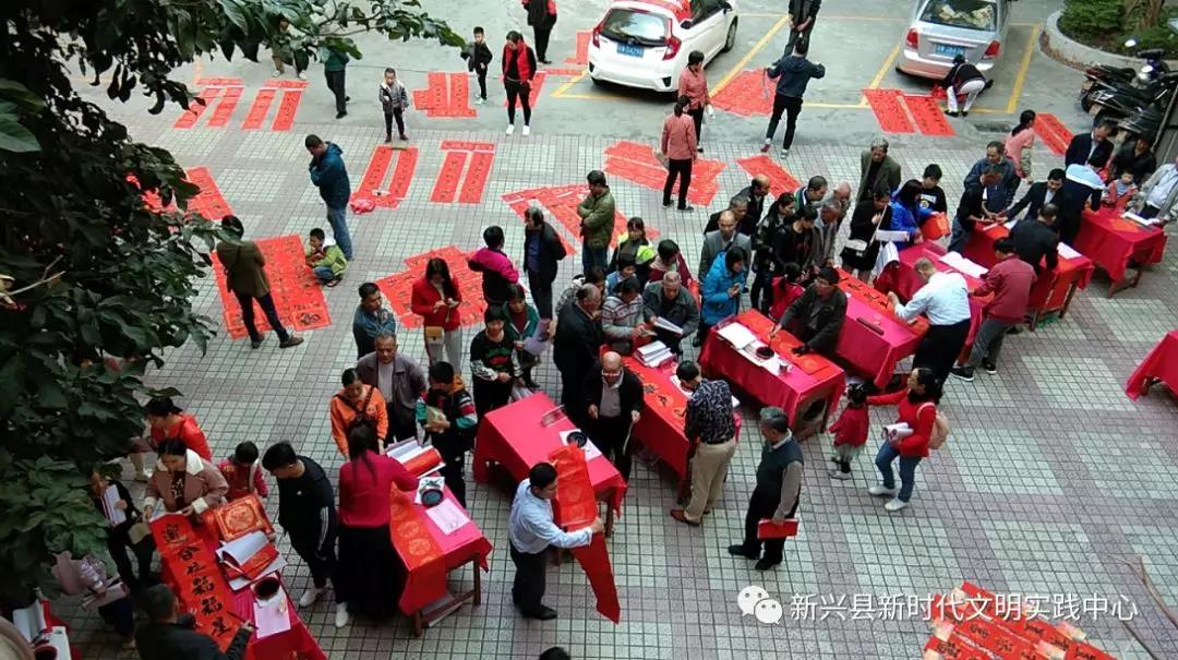 活动现场,志愿者们为群众免费写春联、赠春联,红色的春联和热闹的人群将活动现场映衬得年味十足。志愿者饱含热情,摆开书案,摊开宣纸,挥毫泼墨,书写春联,将真诚的祝福赋诸笔端。