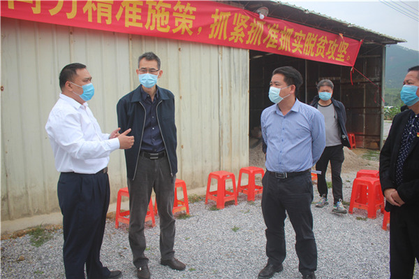 唐谊一行首先来到内东村粉蕉和水果木瓜种植产业基地,实地察看了产业基地粉蕉、水果木瓜的种植情况并向相关负责人仔细了解了该产业基地的种植面积、市场经济效益以及内东村脱贫攻坚相关情况。在与贫困户交谈时,唐谊勉励贫困户要对生活充满希望,要依靠双手脱贫致富。