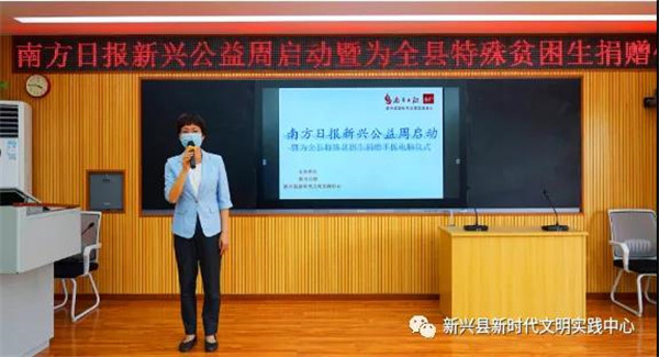 325日下午,云浮新兴公益周启动仪式暨为全县特殊贫困生捐赠平板终端活动,在云浮市新兴县环城中学举行。本次活动由南方日报、南方+、新兴县新时代文明实践中心联合主办。该公益周启动后,南方日报与新兴县新时代文明实践中心将定期联合开展品牌文明实践志愿服务活动,努力打通宣传群众、教育群众、关心群众、服务群众“最后一公里”。