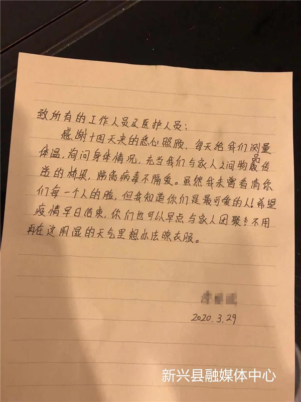 隔离病毒不隔离爱,一封来自新兴县集中隔离点的感谢信!