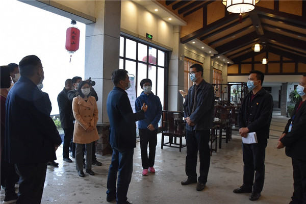 唐谊一行首先来到广东天露山旅游度假区,实地检查环境卫生、个人防护、清洁消毒等落实情况,并听取景区疫情防控及复工复产。他指出,一要落实企业主体责任,严格景区管理,落实有效防护措施,确保安全有序复产;二要做好疫情防控,加强员工健康监测和培训管理、做好景区综合管理、公共卫生、游览组织、及时有效处置异常情况;三要全方位开展疫情防控知识的宣传,引导游客加强自身防护安全,营造自觉防控、文明旅游的良好氛围。