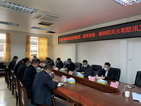 袁伙月一行随后在大江镇政府会议室召开座谈会,会上镇委书记陈冠鸿先汇报疫情防控、脱贫攻坚、森林防灭火和防汛等工作情况,袁伙月肯定了大江镇在疫情防控期间,各项工作均做到提早谋划和扎实推进。就疫情防控、脱贫攻坚、森林防灭火和防汛工作开展,袁伙月指出,一是疫情源头防控仍是重中之重,不能松懈懈怠;二是今年是决胜全面建成小康社会、决战脱贫攻坚战之年,必须提高政治站位,对标对表完成全部贫困户出列任务;三是必须加强应急队伍建设,严格落实值班值守制度,加强对削坡建房和地质灾害点的巡查,确保群众生命财产安全和社会大局和谐稳定。