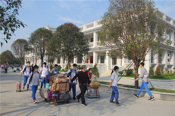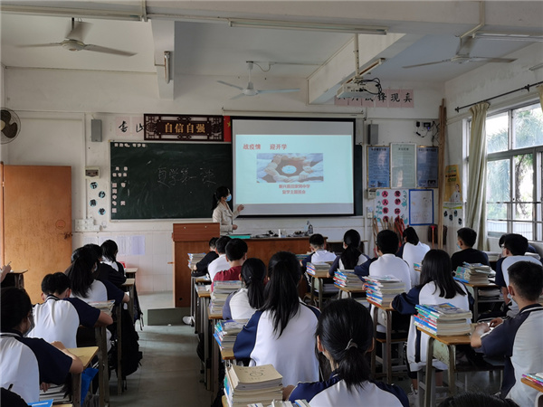 4月27日,新兴县各中学结束了超长的寒假,分班级、分时段错峰组织高三、初三学生返校上课。学生返校首日,全县各中学教育教学秩序井然。