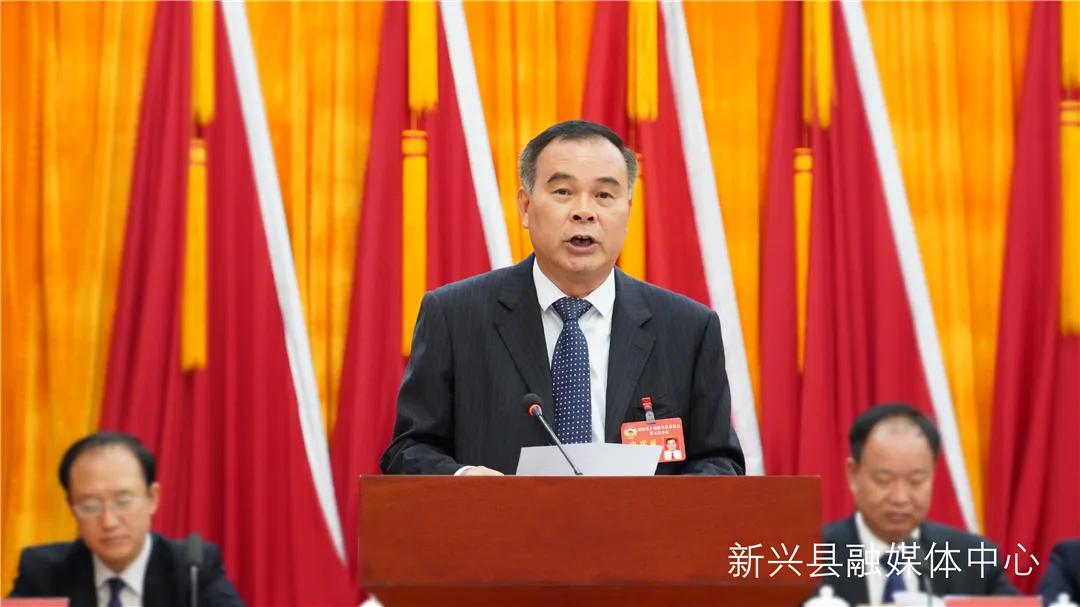 △县政协主席梁国华代表政协第十届新兴县委员会常务委员会向大会作工作报告