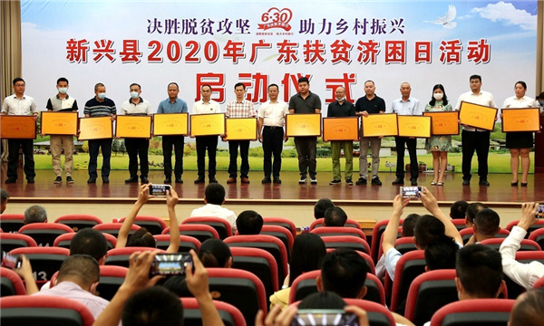 在第11个“广东扶贫济困日”即将到来之际, 6月29日下午,新兴县举行2020年“广东扶贫济困日”活动启动仪式。新兴县委书记王巍,县委副书记、县长袁伙月,县人大常委会主任陈就庆,县政协主席梁国华等县四套班子领导,县委、县政府机关大院全体干部职工,爱心企业代表等约150多人参加活动,并进行了现场捐款献爱心活动。