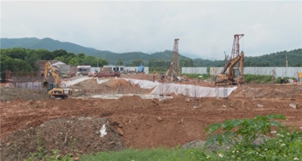 在太平镇污水处理厂项目施工现场记者看到,多台挖掘机来回穿梭作业,施工人员在烈日下挥洒着汗水忙碌着各项工序,一片热火朝天的景象。