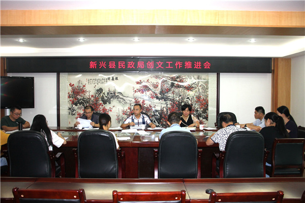 7月15日下午,新兴县民政局召开创文工作推进会,对全局创文工作进行再动员再部署。局长陈国泉、副局长黄树英、邓冠恒及各相关股室负责人参加会议。