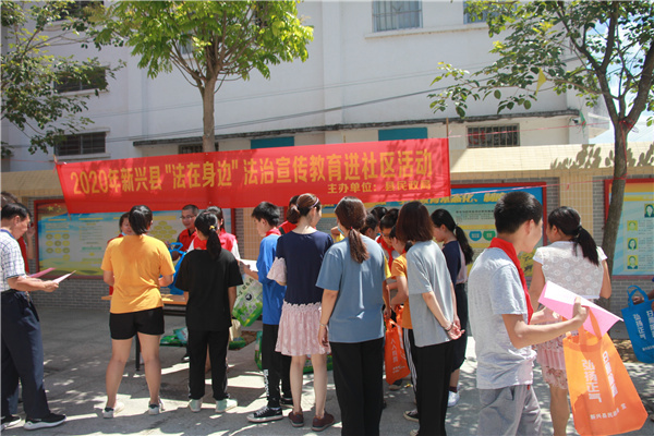 为强化社区法治宣传教育力度,不断增强广大群众的法律意识和法治观念,提高居民依法维权的能力和法律素质, 7月23日上午,县民政局副局长邓冠恒带领局干部、职工、组织部分社工、志愿者代表20多人到新城镇大稳村委,开展了以“法在身边”为主题的法治宣传教育进社区活动。