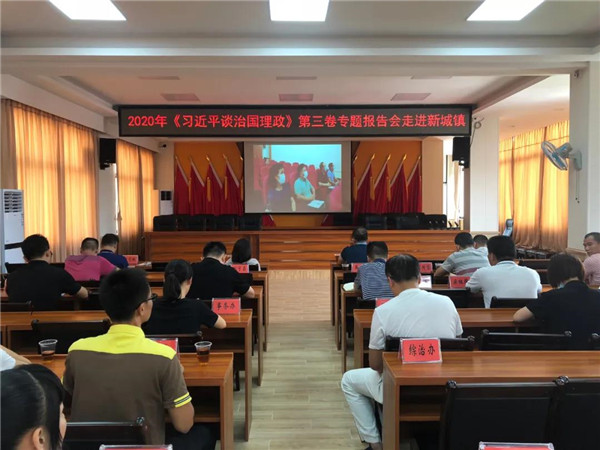 县委常委、宣传部部长梁小鹏主持学习会并指出《习近平谈治国理政》第三卷生动记录了党的十九大以来以习近平同志为核心的党中央,团结带领全党、全国各族人民推动党和国家各项事业取得新的重大进展的伟大实践,是全面系统反映习近平新时代中国特色社会主义思想的权威著作。要求,各镇、各单位务必把学习贯彻《习近平谈治国理政》第三卷作为当前和今后一个时期的重要任务,按照市委、县委的工作部署,高举旗帜,攻坚克难,决战脱贫攻坚、决胜全面建成小康社会和融湾发展新兴先行目标任务做出新的更大的贡献。