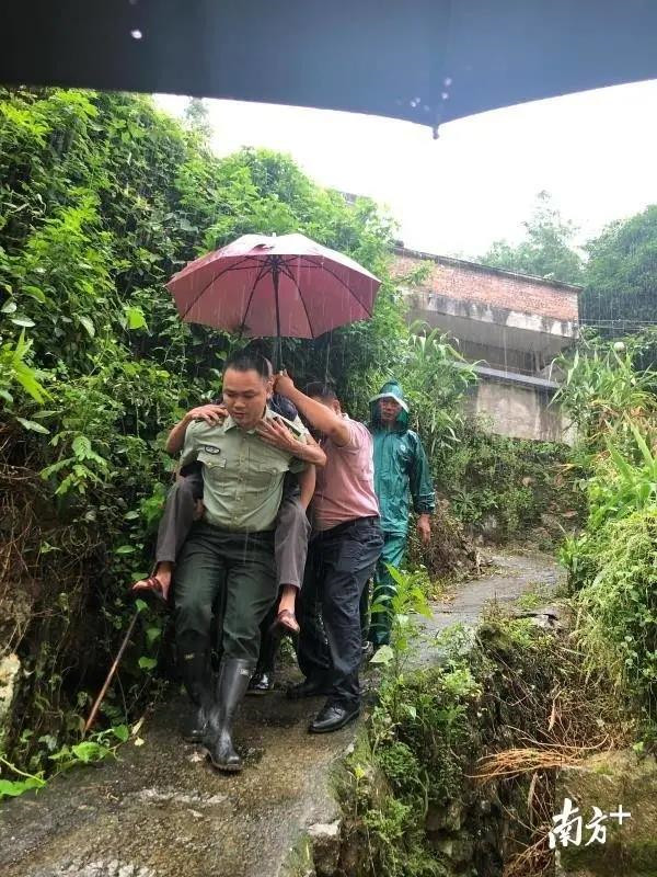 据了解,谢远志部长作为大江镇武装部应急分队队长,深知大江镇镇情,山多路陡,有一些削坡建房人员在此居住,受此次降水影响,存在安全隐患。谢部长第一时间召集应急分队队员前往半山地带,背着双目失明的独居老人沿着陡峭湿滑小路到安全地带。
