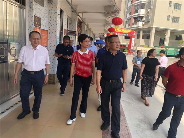 袁伙月一行首先来到新城镇中心小学,仔细检查该校体温检测点、医务室、观察室等重点部位,详细了解学生课室、宿舍、饭堂的防控措施落实情况。袁伙月强调,学生是祖国的未来,要时刻绷紧疫情防控这根弦,滴水不漏做好学生和老师的安全防护工作;在平时校园生活中要提醒学生注意排队距离,教导学生在排队时不拥挤。同时,学校还要要进一步净化校园及周边环境,做好垃圾分类宣传,教导学生将垃圾投入正确的垃圾桶内,为师生创造安全舒适的校园环境;学校要加大安全意识的宣传教育,通过教育学生的方式来让其父母知道要加强安全意识,例如交通方面,骑车一定要佩戴头盔。