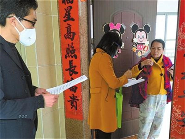 网格化管理和排查在全县疫情防控中发挥了积极作用,在新城镇网格化管理G4、G5片区,90多名网格员,30多个小分队,在组长李耀强同志的组织带领下,财政局排查人员冒着风雨严寒,走家串户,耐心宣传县“疫情防控,人人有责”事项措施,细心了解住户情况及近期行迹,认真填写县防疫网格化排查人员登记表;关心提醒住户安心居家,做好防护措施。新兴县财政局先后开展网格化入户2823户,排查登记7172人。财政局排查人员的真诚态度、工作细致赢得了居民群众的认可,用言行在党群干群之间架起一道“连心桥”。在2月14日排查一幢自建楼时,感人的一幕出现了,一位住户看到我们工作人员辛勤工作,主动送上几瓶矿泉水。