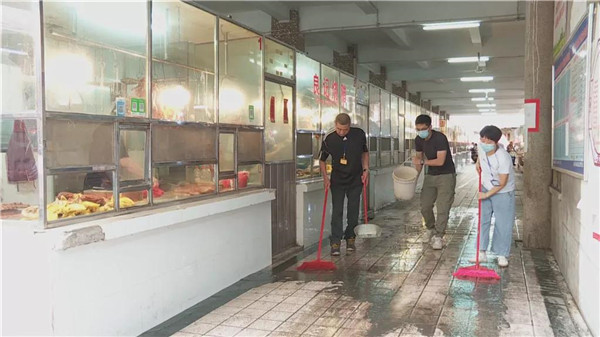 黄文忠(县市场物业管理中心副主任):疫情期间全系统工作人员坚守岗位,坚持每天对全县集贸市场进行大清洁、大消毒,确保垃圾日清、消毒彻底、不留死角。每天对经营者测体温并进行登记,各站管理人员加强了市场内巡查工作,坚决禁止野生动物在市场内销售,并加强台账登记工作,依法严厉杜绝违法经营行为,确保良好的市场经营秩序。